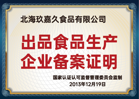 出品(pin)食品(pin)生(sheng)産(chan)齊(qi)业備(bei)案证明
