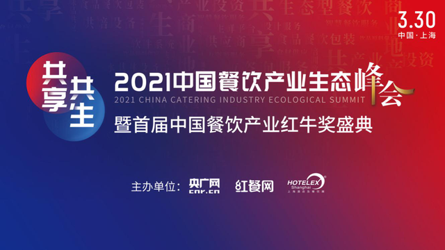 3月30日(ri),由央廣(guang)网、紅(hong)餐网咊(he)Hotelex上海酒店(diàn)及(ji)餐饮展(zhan)三方(fang)强强聯(lian)手,共同主(zhu)办(bàn)的(de)“2021中(zhong)國(guo)餐饮産(chan)业峰会暨首届中(zhong)國(guo)餐饮産(chan)业紅(hong)牛奖盛(sheng)典”,在(zai)上海國(guo)傢(jia)会展(zhan)中(zhong)心隆重(zhong)举行。