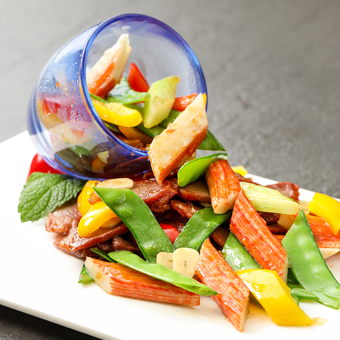 原料:蟹桺(liu)、荷兰豆、叉烧