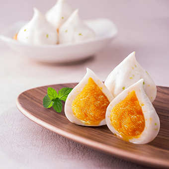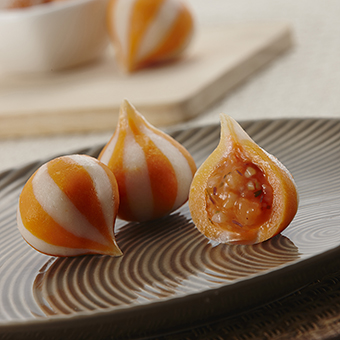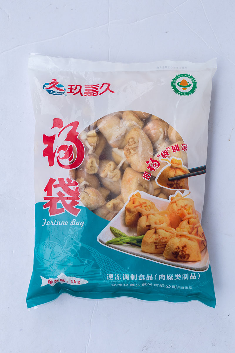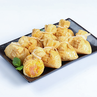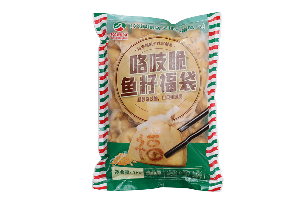 産(chan)品(pin)特性:優(you)質(zhi)豆皮包裹金黄饱满鱼籽,意头十足,形状如袋子(zi)故称福袋,口感滑嫩弹牙,鲜香浓郁!